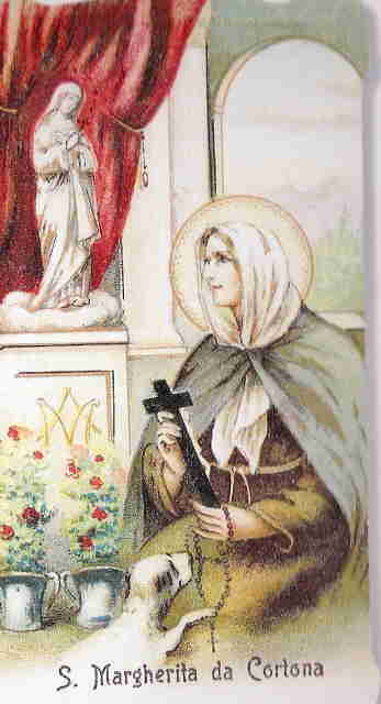 A Franciscan tertiary, Margaret had lived with her lover until his murder. Upon her conversion, she struggled with the temptation to return to her former life. She suffered extreme bouts of self-hatred and had to be prevented from self-mutilation. Despite the ridicule and gossip that surrounded her, she was extremely spiritual, experiencing visions of Christ.