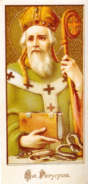 A British subject of Rome, Patrick was kidnapped by pirates and taken to Ireland when he was sixteen. After six years of herding sheep and being exposed to the elements, he managed to escape. He studied to become a missionary to Ireland, and on his return devoted himself to evangelizing the tribes there. It was said he had more power over nature than the druidic priests. He rid the island of snakes and could control the weather. He was granted his request to God that the Irish be judged by him when they died. He is a national hero there and his cult has spread all over the world.