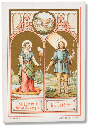 A field hand who spent his entire life working on the same farm outside of Madrid, Isidore and his wife were simple and devout people. When their young son died, they attributed it to God’s will that they have no children, and lived chastely thereafter. They spent so much time praying that their employer suspected them of shirking their duties. When he paid them a surprise visit, he found angels plowing the fields while Isidore prayed.