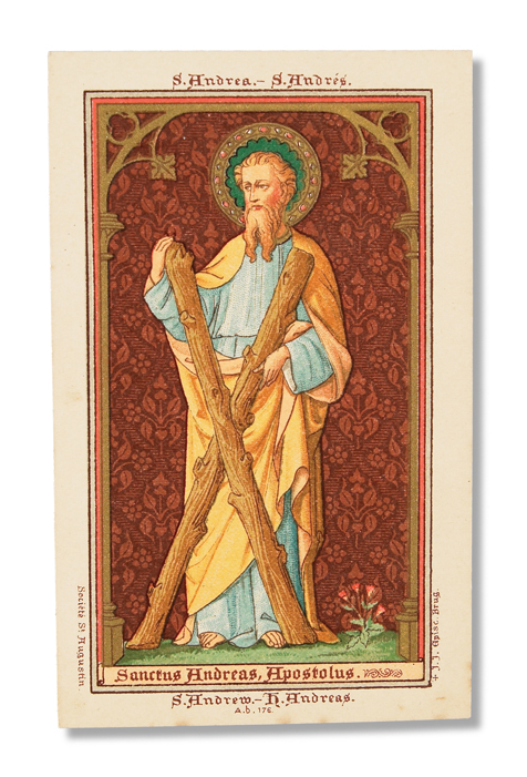 Other patronages: Amalfi (Italy), Burgundy (France), Russia, Scotland; fish dealers, golfers, sailors, singers; spinsters