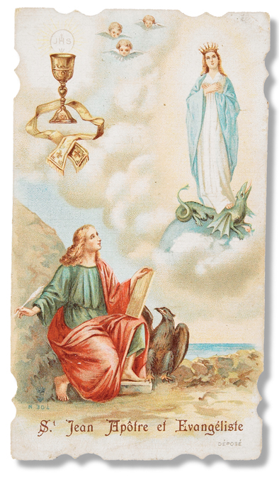 A witness to the Transfiguration as well as the author of one of the Gospels and the Apocalypse, John is considered to have had great mystical powers. In a.d. 95, the Romans attempted to martyr him by throwing him into a vat of boiling oil. He survived this and was exiled to the island of Patmos for practicing magic.
