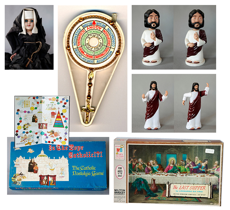 My most unusual yard sale item, and I think most Catholic, is the ‘Agony’ toy. No matter how I move the dial, the pointer stays put on Agony.